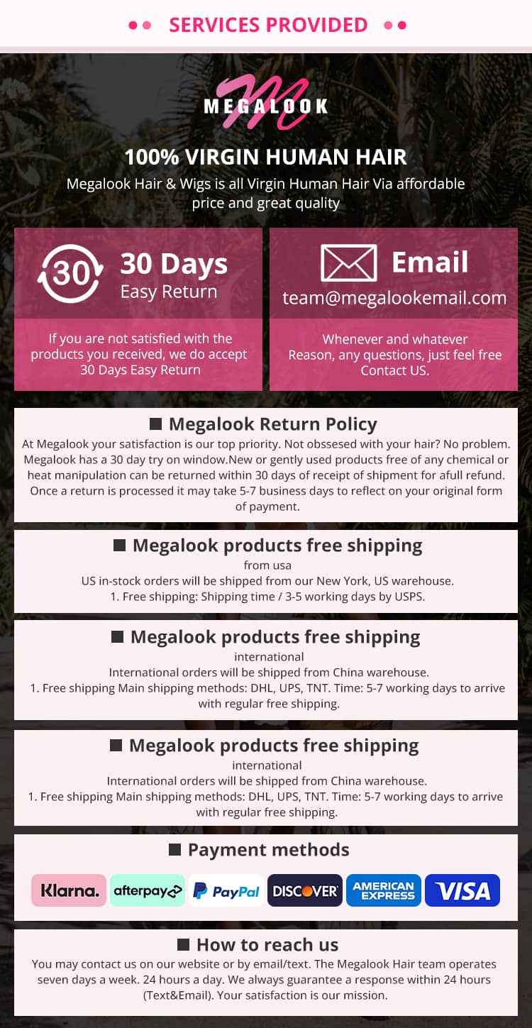 | Returns | Accept 30-day no reason return & exchange, with hair not be used |